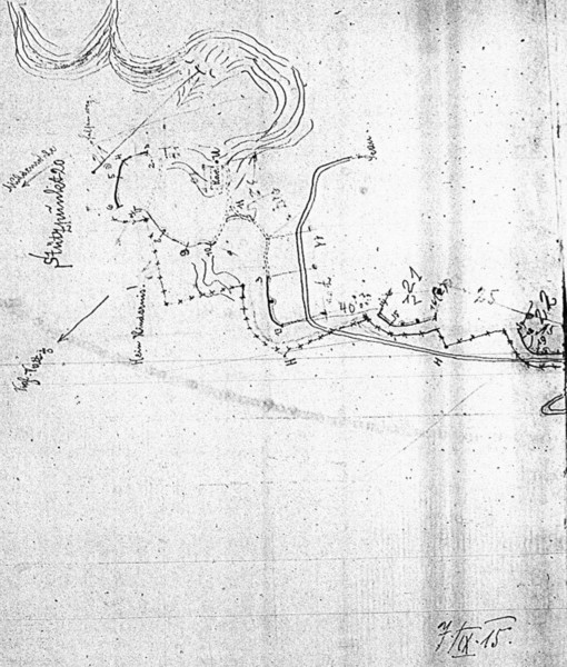 Stellung, die Schussrichtung eingezeichnet, vermutlich die dann im Oktober