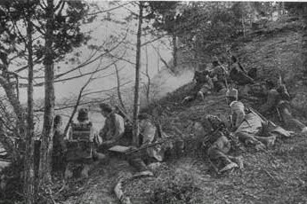 Meldung: Das Telephon wurde wieder hergestellt. Inzwischen hatte meine Kompangnie abends die Rothschanzenbesatzung abgelöst und wir arbeiteten an der Ausbesserung unserer Gräben, die allerdings viel schwächer beschossen wurden waren als die Spitze. Nach 11 Uhr abends (Das Artilleriefeuer blieb seit 9 Uhr verstummt) kam aus der oberen Sappe die Meldung, die Italiener wären aus der gegenüberliegenden Stellung vorgegangen, hätten sich jedoch auf das heftige Feuer unserer Feldwachen zurückgezogen. Der andere Zugskommandant, der mit mir im Dienste war, wollte nun eine Leuchtpistole abschießen, die Landung ging aber schon beim Zuklappen los, knapp vorbei am Kopfe des Oberleutnants W., der geblendet rückwärts taumelte; sie fiel in eine Muntitionsnische voll Patronen, Handgranaten und leeren Sandsäcken, die gleich Feuer fingen. Geistesgegenwärtig riß sie aber ein Oberjäger heraus und verhinderte dadurch eine Explosion. Ich drehte mich wieder um und schaute zur Spitze hinauf. Kann es zuerst nicht glauben, ja wirklich: der Berg spaltet sich! Drei riesige Stichflammen! Jetzt ist´s eine enorme schwarze Rauchwolke, vielmals größer als der ganze Berg, gefolgt von einer fürchterlichen Detonation sausen schon die ersten Felsen herunter, zum Teil hoch über uns, und im gleichen Augenblick ist der ganze Raum Taghell von den mit gewaltigem Salven eröffneten Trommelfeuer. – Ein Höllenlärm, kein Schuß mehr zu unterscheiden – alle feindlichen Hänge bis zu den Entferntesten leuchten von den Mündungsblitzen ausfeuernder Geschütze. Nun hat sich auch die eigene Artillerie eingesetzt – ich sah nur die Explosion in der oberen „Welschenstellung“ - aber viel, viel schwächer. Von einem Posten kriech ich zum anderen (die alle Heldenhaft ausharrten) schreie ihnen aufmunternder Worte zu, schleife Munition herbei und bleibe dann selbst erschöpft bei einem Jäger liegen, mit ihm die Beobachtung wechselnd. Oft bin ich geblendet von knapp einschlagenden Granaten, dann haut es mich wieder in das Loch auf den Jäger. Dazu schießen die Feinde aus der gegenüberliegenden Stellung wie wild, rasen mit der Maschine den Hang ab; zu hoch; Wurfminen, Lufttorpedos, ein Höllentanz! Dann weiter zum nächsten Posten, da liegt der nächste Tot, Schädel zerschmettert, Graben eingeebnet, dahinter ein Zugsführer, der schreit mit zu: „Herr Fähnrich, heut ist alles aus.“ Doch das Infanteriegeschütz ist intakt, die Maschine auch, Gott sei Dank! Beim vorgeschobenen Posten ein Trümmerhaufen, nur Fetzen der Hindernisse, Sprengstücke, Eisenstäbe…..statt des Grabens. Zurück zum Stand, wo ich zuletzt meinen Kameraden sah. Da knien noch zwei; ich rufe: „Servus Duchen!“ und ein anderer antwortet:“ Der Herr Kadett ist nicht da, der Herr Kadett ist tot!“ Endlich ließ das Feuer etwas nach und ich hörte die unglaubliche Meldung: „ Kadett R. ist mit dem Reservezug hier eingetroffen und mit seinen Leuten in der Kaverne“ Bei dem Sperrfeuer eine bewundernswerte, ans Unmögliche grenzende Leistung; er hatte zwar über eine Stunde durch den Laufgraben gebraucht, aber alle Leute hergebracht. Um 1 Uhr beobachtete ich wieder eine Sprengung, aber viel kleiner, am rechten Flügel der Spitzenstellung, und im gleichen Augenblick steigerte sich das Feuer zur äußersten Wut. Das Schicksal des Vorgeschobenen Postens, für uns alle von größter Wichtigkeit, lässt mir keine Ruhe; Ich komme glücklich hinaus, und der wackere Kerl lebt noch, hat keine ernstere Verletzung. Gegen 7 Uhr früh lässt das Feuer nach, ich gehe nun wieder hinaus. Da haben die endlich abgelösten Posten schon wieder angefangen die Gräben auszubessern. Die prächtigen Burschen! Wir wussten nun aber noch immer nicht, was mit der Spitze los war. Seit Beginn des Trommelfeuers waren alle Telephonverbindungen so gründlich zerschossen, dass sie überhaupt neu angelegt werden mussten, daher keine Nachricht von rückwärts. Eine Patrouille, die im Morgengrauen versucht hatte gegen die Spitze vorzudringen, wurde im ungedeckten Gelände durch starkes Feuer gezwungen, umzukehren. – So machte ich mich gegen 2 Uhr nachmittags selbst auf. Es gelang mir auch unbemerkt von den etwa 200 Schritt entfernten Italienern den freien Raum zu überschreiten. Dann kroch ich weiter und traf bei der Einmündung des Gradweges in die Sappe einen toten Jäger, während die dortige Wache selbst verlassen stand. Von hier aus konnte ich etwa auf 80 Schritt Luftlinie feststellen, dass der Gipfel im Besitze der Italiener, mit Sandsäcken und Schutzschilden bereits sehr stark ausgebaut sei, daher die einzige Annährungsmöglichkeit – den steilen und schmalen Raum zu beiden Seiten der Sappe – vollkommen beherrschte. Auch sah ich einige ihrer Posten mit großen Kapuzen; Zwei von ihnen befanden sich im gleichen Graben mit mir. Auf das hin ging´s wieder am Bauch zur 8er Wache zurück, deren Sicherung gegen die Spitze ich anordnete und mit ganz besonderem Glücke kam ich auch in die Sappe und zur Kompagnie, der ich Meldung erstattete. Abends steigerte sich das italienische Artilleriefeuer vorübergehend zu großer Heftigkeit. Nach 10 Uhr gab unsere Artillerie ein 15 Minuten langes, maßiges Feuer auf die Spitze ab, worauf einige Züge versuchten, diese im Sturme zu nehmen. Die Verhältnisse für uns waren die denkbar ungünstigsten. Zum Gipfel führt nur ein schmaler Felsgrat, dieser wurde verteidigt durch ein im Tunnel stehendes Maschinengewehr, der Feind durch unsere Artilleriefeuer aufmerksam gemacht, fiel mit der ganzen Wucht seiner schweren Artillerie die kleine Heldenschar an. Nur wenige gelang es unter Führung des Tollkühnen Fähnrihs Sch. Bis zum Tunnel vorzudringen. Hier wurden die Erschöpften mit Handgranaten zurückgeworfen. Fähnrich F.M. (Aus d. Österr. Illustr. Rundschau, Sept.1918)