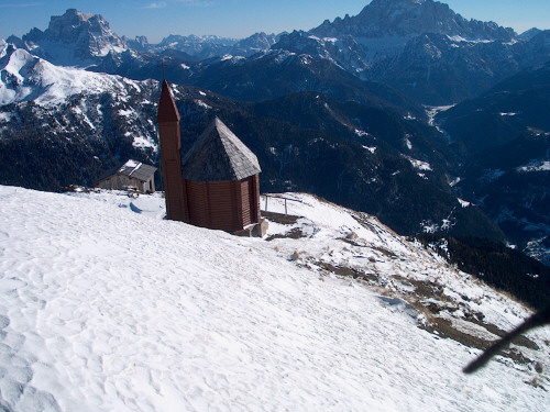 Kapelle, darunter die Schutzhütte der ANA Gruppe Belluno.