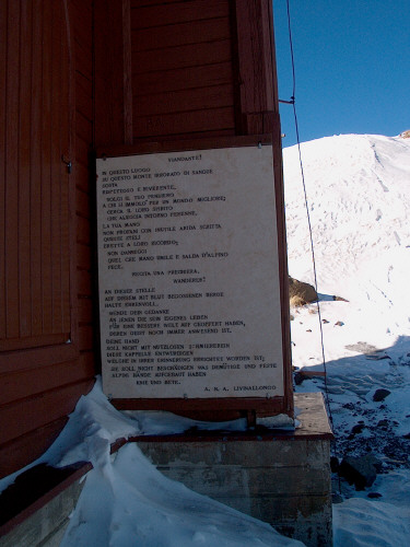 Marmortafel an der Kapelle, in Deutscher und Italienischer