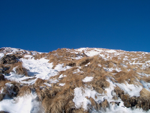unterhalb des Gipfels, hier startete der Sprengstollen zum Gipfel