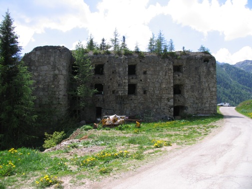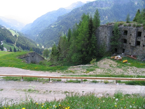 Eine schmale geteerte Straße führt direkt zur Kehlseite des Werk Corte, wo auch
