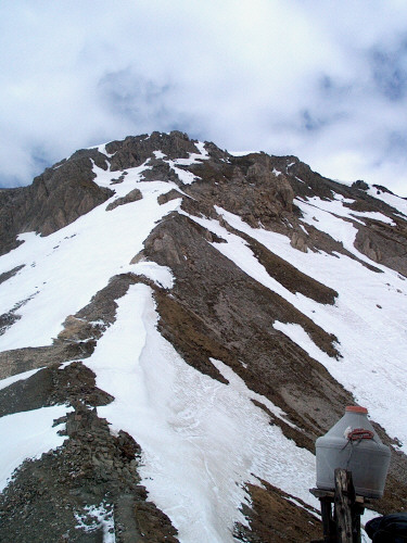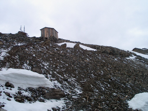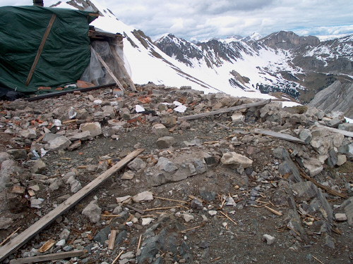 Bergvagabundenhütte (abgerissen), dahinter der Costabellagrat