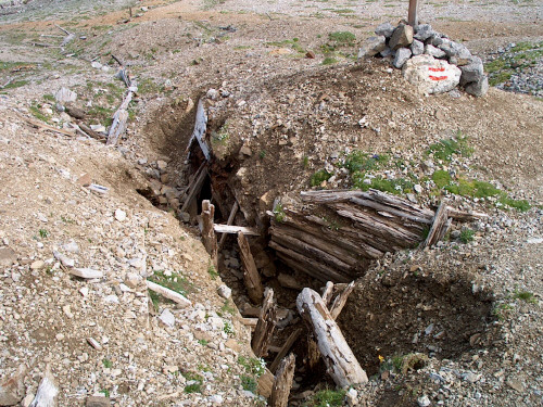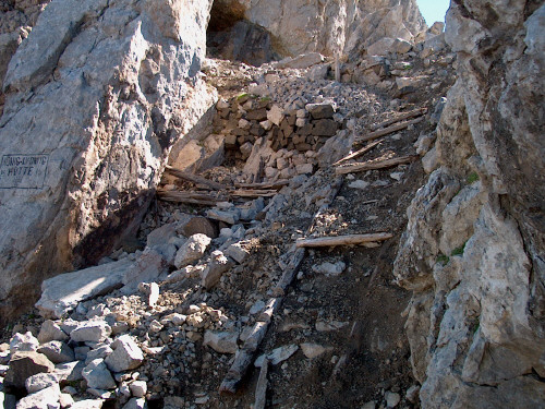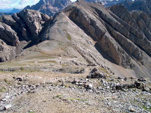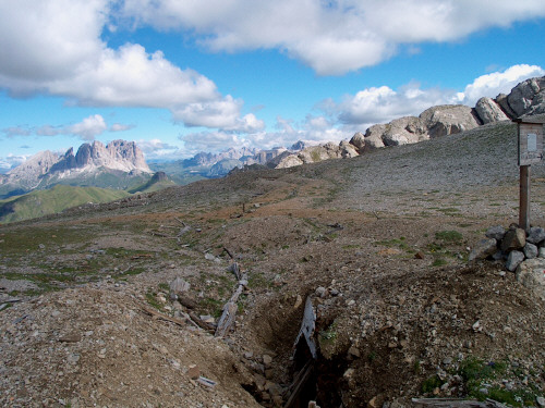 Laufgräben durchzogenes Plateau kurz nach dem Gipfel der Costabella