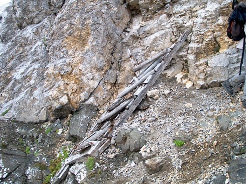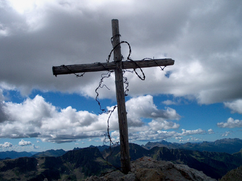 aus Stacheldraht und alten Balken auf dem Costbellagipfel
