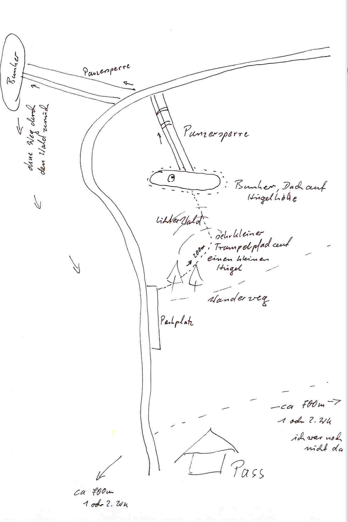 Wegeskizze zu den 2. WK Bunkern am Croci-Pass von Ulrich Mößlang