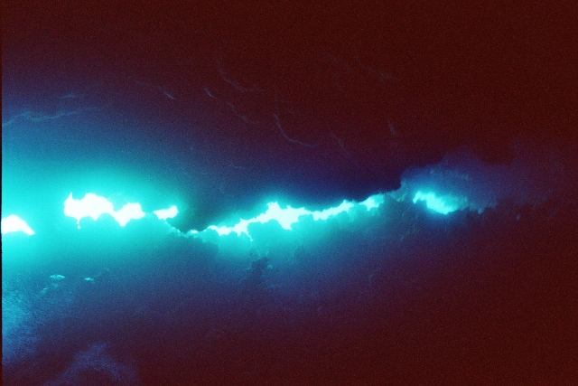 Da es nicht dunkel ist, kann man auch von oben bis auf den Grund sehen.