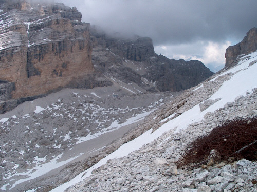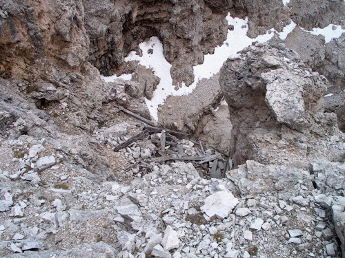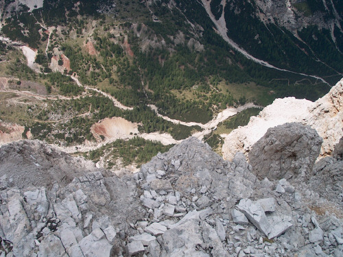Blick von der Stellung in den Talboden des unteren Travenazestal, links der Faniskamm.