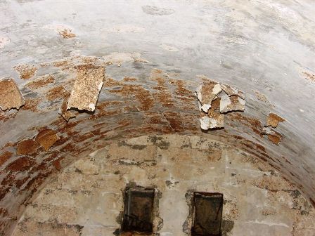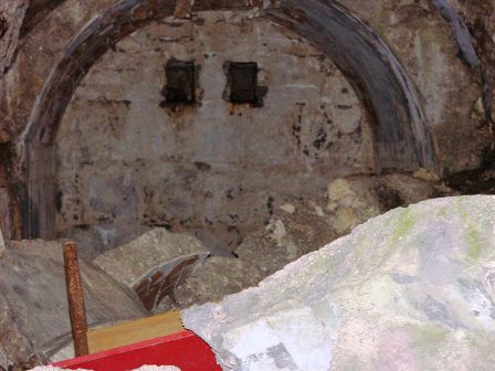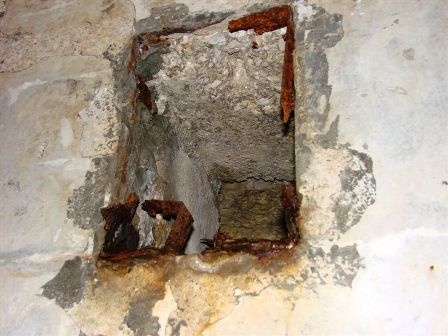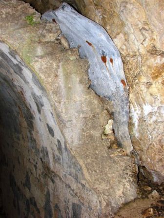 Wasserdichtheit mit äußerem Zinkblech, Beschichtung mit Korkisolierung, Lüftungsklappen und das innere Betonhemd. Le caverne secondo l´istruttoria di Steinhart: Lamiera zincata al´esterno della camicia in calcestruzzo contro l´infiltrazione dell´acqua, isolamento con lastre di sughero, serrande di ventilazione in fondo. VJ
