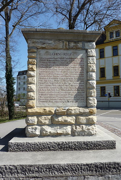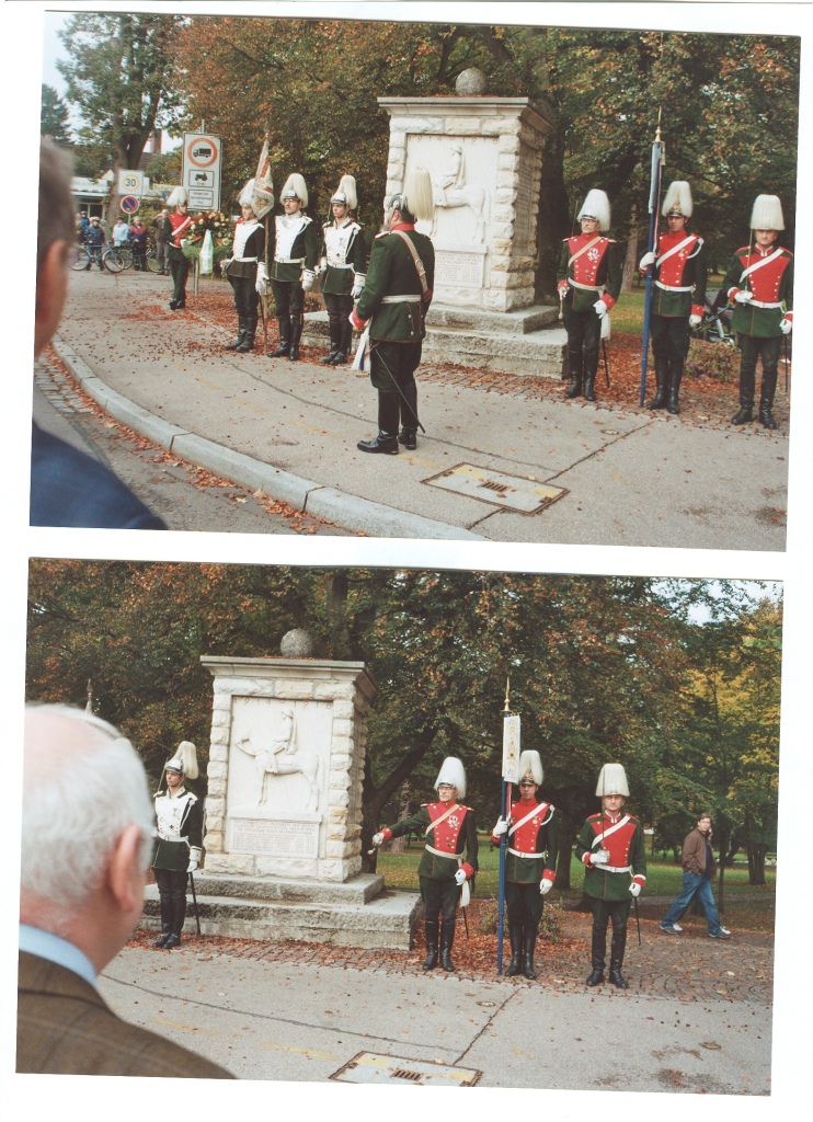 Lieber Uli, wie angekündigt, sende ich Dir Bilder vom Kriegerdenkmal des zuletzt gegründeten Königlich-Bayerischen 8.Chevauleger-Regiment in Dillingen an der Donau (1908 - 1919). Das Denkmal steht im Dillinger Stadtgarten, unmittelbar an der querenden Bundesstraße.- Das Regiment trug zu der Grünen Grundfarbe der Uniform weiße Parade-Rabatte und goldene Knöpfe (Spitzname: "Spiegelei mit Spinat"). Das Regiment wurde unter Personalabgabe des in Augsburg liegenden 4.Chevauleger-Regiments (Grün e Uniform, rote Parade-Rabatte, silberne Knöpfe) gegründet. Nachdem in Dillingen kein Traditionsverein mehr existiert, übernehmen wir die Traditionspflege, so gut es geht. Die Bilder stammen von dem von uns am 11.10.2009 durchgeführten Chevauleger-Tag in Dillingen/Do.