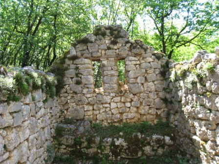 Eine alte Unterkunft, mit einer Feuerstelle im hinteren linken Eck