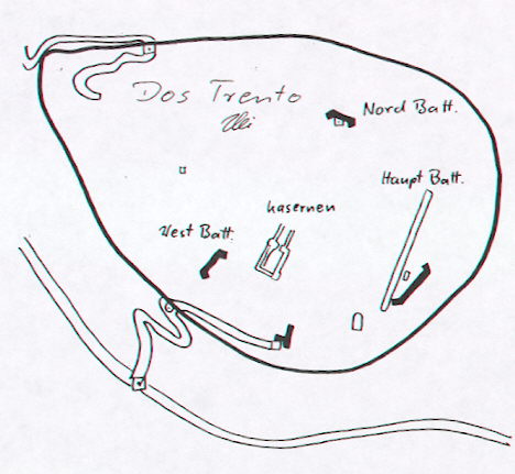 Vielen Dank an Volker Jeschkeit für den Kartenausschnitt und die Information über das fast vergessene Hauptwerk und seinen Anmerkungen zu den Kampfhandlungen zwischen Österreich und Italien.
