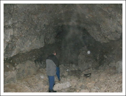 In einer großen Kaverne auf der Westseite, durch die hohe