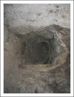Mit einer Taschenlampe erkennt man die Verbindungsgänge zwischen den