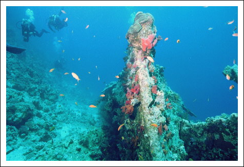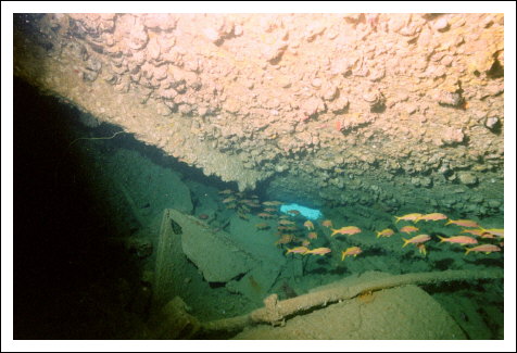 Vorsicht, in dem Wrack halten sich zeitweise viele Skorpionfische auf,