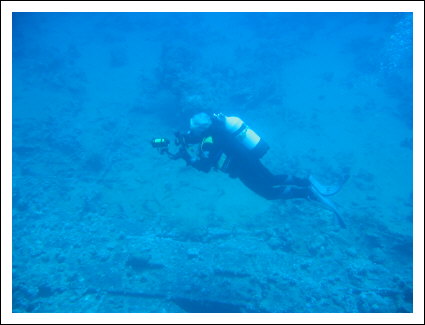 Ich ( Uli ) mit meiner Nikonos V auf Fotojagd, fotografiert von Theo.