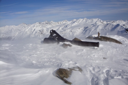 Foto Alexander Kraffczyk 2008 Winter 2009 sind nur 4km vom Ortler entfernt! Feuerleitung wurde von der Königsspitze aus gemacht! Aber was machen welsche (italienische) Kanonen in der Österreichischen Front? Ganz einfach, es sind Beutekannonen die nach der 12 Isonzoschlacht dort erbeutet wurden und ab dem Frühsommer 1918 auf ihre ehemaligen Besitzer feuerte.