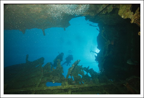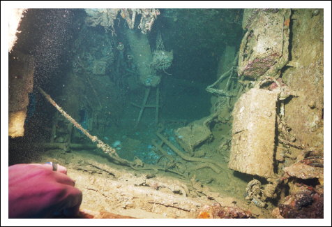 Aus dem Inneren der El Minja ein Foto durch die geborstene Bordwand.