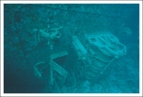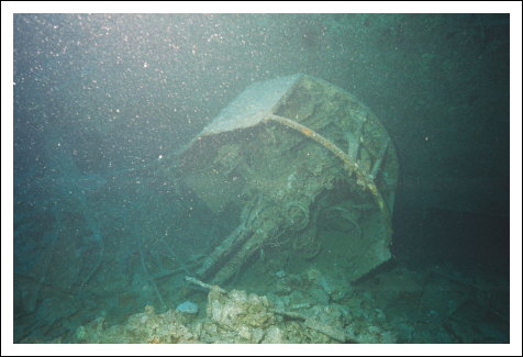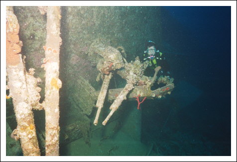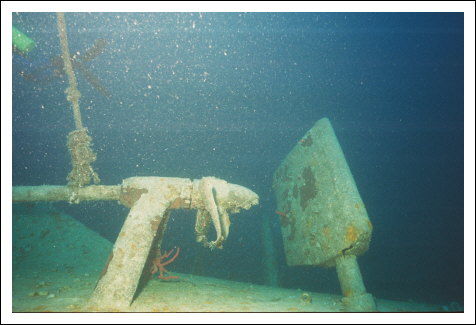 Die Schiffschraube sieht sehr mitgenommen aus , während das Ruder