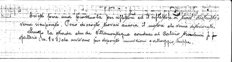 Folgende Fakten: Die Batterie Casara mit ihren Kavernenbatterien war feuerbereit, die anderen Anlagen, wie zum Beispiel der Brunnen für z.B. eine B- Kuppel waren nicht beendet. Allerdings fragt sich der ital. Erkunder, welchen Zweck der Brunnen haben sollte. Monte Calisio: Der Stützpunkt und die PzH Batterie waren beendet (2 x Skoda M97 Kuppeln). Man findet ca 2km von Martigniano und Villamontagna am Rande der Straße abgestellt , die Materialien für 2 weitere Kuppeln (welcher Typ sagt er nicht). Es erklärt aber den Grabungsbeginn des 3. und kleinen Brunnens. Er findet "5 spicchi" oder "specchi", also 5 Einzelteile einer "Avancorazza", also einer Vorpanzerung, wenn ich das richtig interpretiere. Kann ich mir nicht erklären, denn solche Teile hatten nur die 10cm/M09 Turmhaubitzen. Auf dem Gipfel findet er die Reste einer 2-geschützigen 9cm Flakbatterie, 2 MG zur Luftabwehr und einen Scheinwerfer mit Motor-Generator. Außerdem Baracken für die Mannschaft , Offiziere und für die Munition. Alles schon ziemlich verfallen, auch die Geschütze. Aber ein sehr heißes Dokument! (Original: Nicola Fontana). Ich komme gerade vom Gipfel des Calsiso und habe wahrscheinlich das Fundament in Stahlbeton mit Ankerbolzen einer 9cm Flak gefunden. Gruss VJ hier noch ein Foto der Flak 9cm/M12/M16-LFA45M auf Behelfslafette, normalerweise wurde der runde Sockel direkt mit den Zugankern des Betonsockels verschraubt. Die stand 1918 auf dem Gipfel des Monte Calisio. Gruss VJ