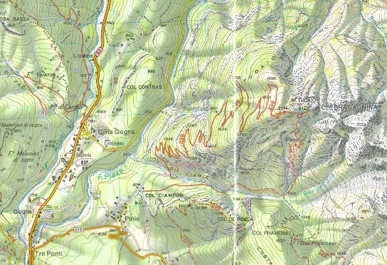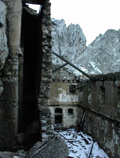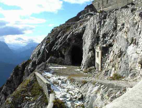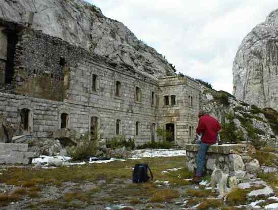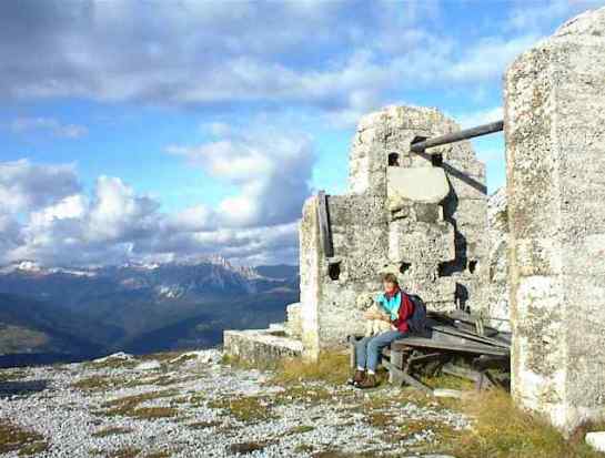 Fotos und Text Ilse & Wolfgang Hellwig Anfahrt: Von Cortina d’Ampezzo auf SS48 nach Auronzo di Cadore und weiter am Tunnel Comelico vorbei auf SS52: nach 3 km Tre Ponti (links ab zum Monte Tudaio), nach weiterem 1 km rechts ab auf SS51b 1 km nach Lozzo di Cadore (rechts ab in den Ort und zum Col Vidal). Ex-Forte Monte Tudaio Koordinaten: UTM Zone 33, R 3 0805, H 51 5505 (Karte siehe oben) Gebaut 1911-15, bestand das Fort im Wesentlichen aus 4 Kanonen 149 mm in Gipfelstellung, die gesprengt worden ist. Darunter befindet sich die große Pulver- und Munitionskammer, der durch eine Poterne mit der Kaserne verbunden ist (begehbar). Weiter unten gibt es ein weiteres Magazin. Östlich von der Gipfelstellung sind die Reste des Ausgucks (Observatorium) zu sehen. Westlich der Gipfelstellung befinden sich die Reste von zwei Seilbahnstationen, der großen und er kleinen. Eine dritte Seilbahn hat es jenseits des Magazins gegeben. Der Zugang des Forts auf der Bergspitze ist durch einen Tunnel gesichert. Entlang der Zufahrtsstraße befinden sich Gebäude sowie eine Stellung, die durch Stollen durch den Berg hindurch zu erreichen sind. Besuch am 26.09.2001 Viele Grüße Ilse & Wolfgang Hellwig