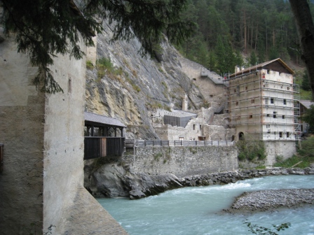 Finstermünzpass, wo die alte Kaserne der Straßensperre von Nauders
