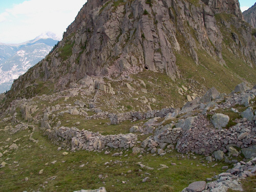 von Steinwällen der Frontlinie zwischen Cima di Litegose und Monte