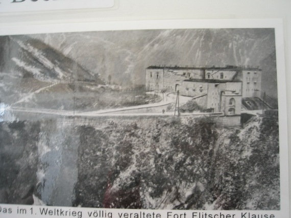 toten Winkel. Das Werk wurde auf den Fundamenten der alten "Veste an der Flitscher Klause" errichtet welche 1796 den Franzosen durch Verrat in die Hände fiel und anschließend zerstört wurde. In dem Werk befindet sich ein kleines Museum, dessen Besichtigung lohnt und so auch die ganzen Räumlichkeiten besichtigt werden können. Eine Erfrischungslokalität ist in zwei kühlen Räumen untergebracht.