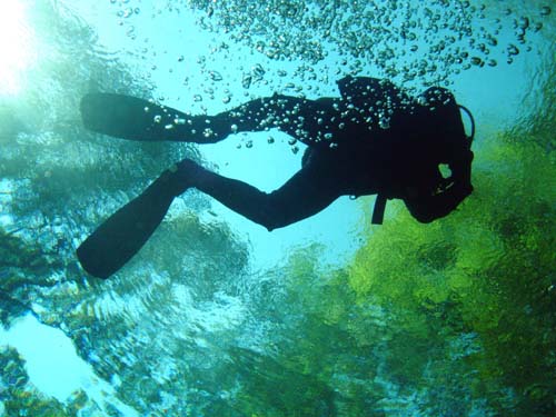 auf Kurzbesuch) einen Tauchgang machten. Wir gingen durchs "Devils Ear" in die