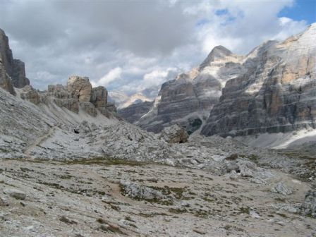 Blick auf die Forcella Travenanzes mit österreichischen Stellungsresten