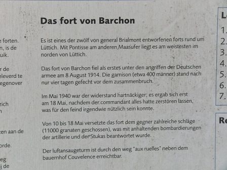 Hallo Uli, anbei sende ich Dir hier ein paar Infos zu Fort Barchon. Erbaut wurde es 1888 nach den Plänen von General Brialmont. Es ist fast baugleich mit Fort Loncin, somit passt also auch die Beschreibung, zumindest zum Teil von Loncin. Hier mal die Bewaffnung im WK 1. Im Zentralmassiv befanden sich 5 Kuppeln. Eine Schwenkkuppel mit zwei 150mm Kanonen, Reichweite rund 10 km. 2 Schwenkkuppeln mit zwei 120mm Kanonen (Krupp), Reichweite ebenfalls 10 km. 2 Schwenkkuppeln mit zwei 210mm Haubitzen (Kupp), Reichweite ca 8 km. 4 Eklipsen-Schwenkkuppeln mit 57mm Schnellfeuerkanonen, zwei auf dem Kernwerk, an der Spitze des Dreieck und jeweils eine an den seitlichen Spitzen des Dreieck. 9 weitere 57mm Kanonen deckten den Kehlgraben, Seitengraben und die Zugangsrampe. 2 bewegliche 57mm Schnellfeuerkanonen standen der Infanterie zur Verfügung. Nach der Besetzung durch die Deutschen im WK 1 wurde es modernisiert und umgebaut, z.b. weitere sanitäre Anlagen, Infanterieausgang Zentralmassiv. Zwischen den Kriegen wurde die Bewaffnung grundlegend geändert, die 21cm Haubitzen wurden durch moderne 15cm Kanonen mit größerer Reichweite ersetzt, die Drehtürme der 15cm Geschütze wurden für Granatwerfer oder MG umgebaut, die 12cm Türme wurden mit 10,5cm Kanonen ausgerüstet, die 57mm Heb/Senktürme wurden auf 75mm umgerüstet und die 57mm Geschütze der Eingangsverteidigung und der Grabenstreiche wurden dann auf MG umgebaut. Viel Freude mit den Bildern und bis bald, Frank