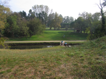 Achtung auf die Golfspieler, ab besten sich unauffällig und nicht