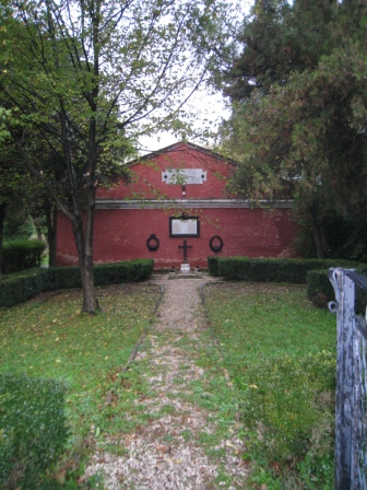 Beim Eingang rechts eine Casematte mit einer Gedenkstätte