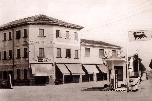 Land". "Das Gebäude beherbergte vor mehr als hundert Jahren eine Osteria, die unter dem Namen " Osteria del Forte'48" bekannt war. Die ältesten Gebäudeteile stammen aus der Zeit vor 1878, einer Zeit in der das Gebäude vor der durchgeführten Katasterrevision im Jahre 1878 konstruiert wurde. Am Anfang des 19. Jahrhunderts war ein öffentlicher Verwendungszweck beabsichtigt, aber dieses Mal unter dem Namen "Locanda al Forte del '48", auch um den Stadtnamen hervorzuheben . Noch heute ist die gesamte Region dank der antiken Osteria unter dem Namen "del Forte" bekannt. Im Laufe der Zeit, nach sorgfältigen Renovierungsarbeiten entwickelte sich die antike Osteria in ein Hotel, das mit jeglichem Komfort ausgestattet ist und unter dem Namen "Hotel Forte del'48" von der Familie De Faveri seit mehr als dreißig Jahren geführt wird. Das Hotel wird unter einem Namen geführt, der über die Zeit bestehen blieb und entfernt an eine österreichische Festung in San Donà di Piave im Jahr 1848 erinnert.