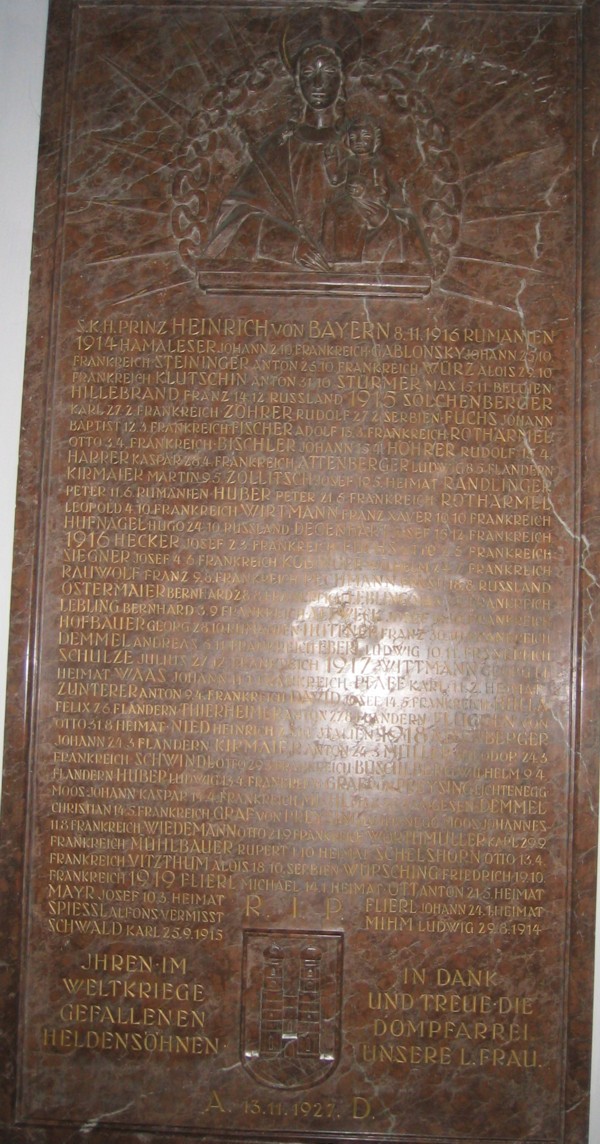 GEFALLENEN HELDENSÖHNEN IN DANK UND TREUE DIE DOMPFARREI UNSRE L. FRAU