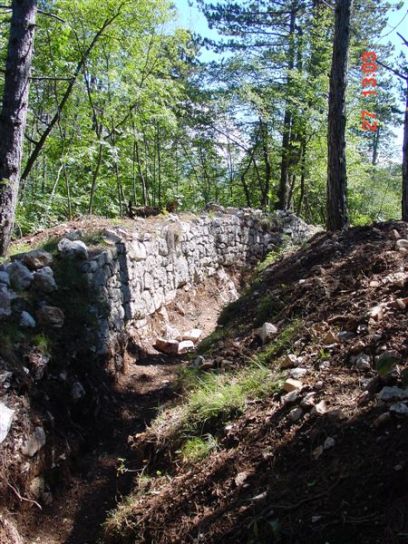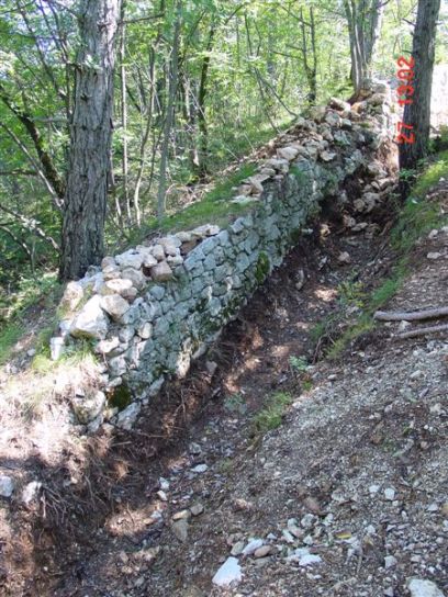 Volksfest auch auf dem Monte Calisio! Der Ortsteil Villamontagna feierte. Natürlich wurden die Arbeiten der Freiwilligen und der Ortsgruppe der Alpini besichtigt. Dabei handelt es sich um die Freilegung eines Teiles der Hauptverteidigungslinie der Festung Trient im Bereich Campel. Der Minibagger hat seine Arbeit beendet, fast 200m des Schützengraben wurden freigelegt, jetzt werden die Trockenmauern instand gesetzt. Die Arbeiten werden noch in diesem Jahr beendet. Danach wird der Wanderweg durch den Graben geleitet. Hinweistafeln werden die geschichtlichen Ereignisse in 3 Sprachen (deutsch, englisch, italienisch) erklären und beschreiben. Eine Abzweigung wird in eine MG Stellung mit der nahe liegenden Kasematte führen. Auch hier wurden bei der eingestürzten Kasematte Betonteile mit dem Abdruck "Donawitz" gefunden. Gruss VJ