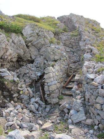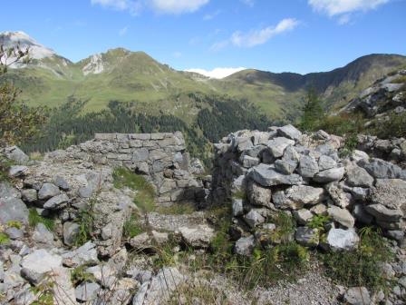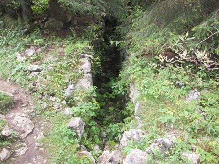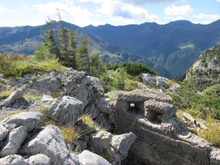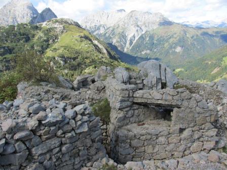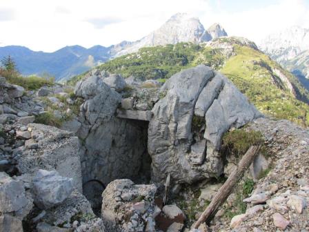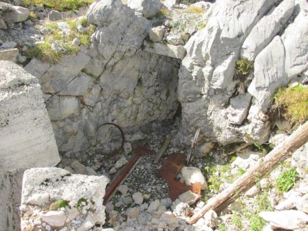 Anreise zum Freikofel: Von Kötschach-Mauthen (Kärnten) über die B110 Plöckenpassstrasse bis zum Plöckenhaus fahren und hier parken. Dann durch das Angerbachtal an der Hausalm der Dolomitenfreunde vorbei zu einer Weggabelung. Links geht es zum Grünsee, rechts zur Hausalm und wir nehmen den mittleren Weg (in den neueren Kompasskarten als E10/436 bezeichnet). Kurz danach eine erneute Verzweigung, hier rechts halten, dann wieder eine, hier geradeaus halten und nicht in die alte Kriegsstrasse einbiegen. Es geht ca. eine Stunde stetig bergauf bis man zu einer Abzweigung kommt, an der ca. 200m weiter hinten eine Kapelle (Kriegsdenkmal) steht. An der Abzweigung einige Kavernen, man geht Richtung Freikofelscharte, der alte Kriegsweg ist zugewachsen man biegt rechts ab und erreicht nach ca. einer guten halben Stunde die Freikofelscharte (1.617m). Hier kann man rechts auf den kleinen Pal gehen (der Weg wird von mir für Ungeübte empfohlen, da sehr sanfter Anstieg im Gegensatz zu den anderen Wegen, dafür länger)und links zum Freikofel. Der Weg verzeigt sich anschließend nochmals und führt an Grenzsteinen von 1920 zu den östereichischen Stellungen, die über einen gesicherten Steig mit Stahlbügeln erreichbar sind, Trittsicherheit erforderlich! Wie die österreichischen Soldaten da im Winter hinaufgekommen sind, ist selbst für meinen Vermieter, einen waschechten Kärntner ein Rätsel. Beim Aufstieg unterhalb der Freikofelscharte liegen im Gebüsch noch mehrere verwachsene Laufgräben und ein alter Brunnen (siehe Fotos). Unterhalb des Freikofelgipfel östereichische Stellungen, im Gipfelbereich italienische Stellungen