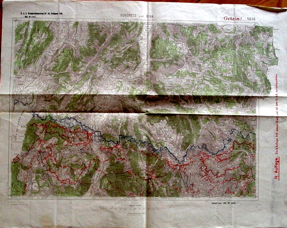 die offizielle Karte der Südfront von Riva über Rovereto 1918