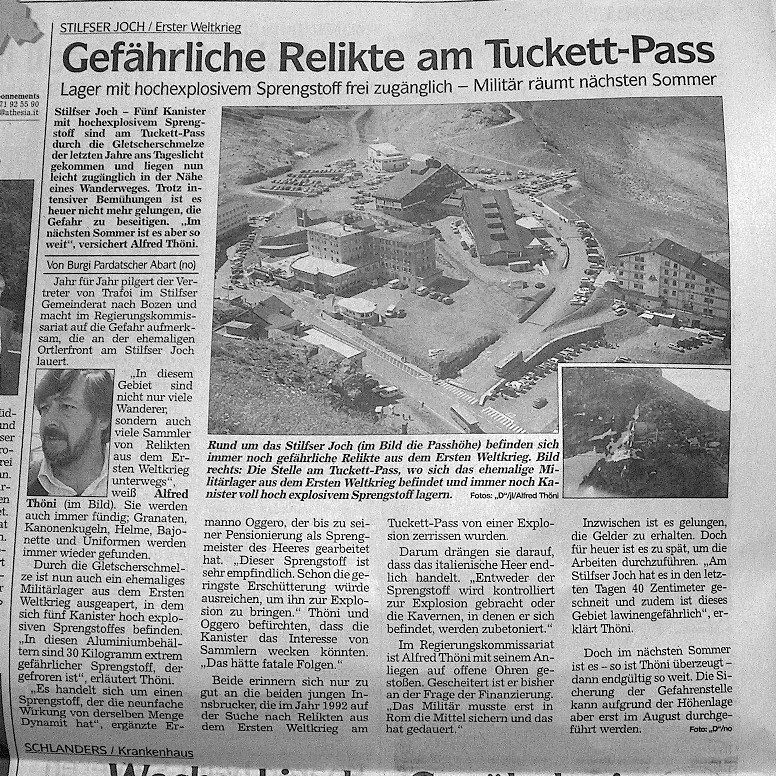 Gefährliche Relikte am Tuckett-Pass Zeitungsartikel
