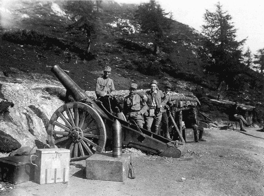 Die 12 Geschütze dieser Stellung waren ne Menge Holz und haben der italienischen Armee aus diesen hohen Stellungen richtig Zunder gegeben. Die 12cm/M80 schoss über 8 Km weit, das Geschossgewicht war 16,7 Kg bei 1,4Kg Sprengladung (Ekrasitgranate), der Schrapnell wog 19,7 Kg bei gleicher Reichweite. Aufgrund der schweren Festungslafette schoss das Teil auch sehr präzis. Die alte 15cm/M4 war eine bessere Version der M94 bzw M99.Etwas höhere Reichweite und höheres Geschossgewicht. Die machte schon mächtige Löcher. Reichweite wie die 12cm/M80. Die Version 96 hatte ein Schutzschild und teilweise einen unten angebrachten Bremszylinder .Reichweite der 9cm war 6,2Km.VJ