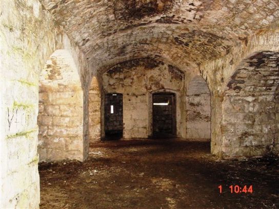 Innenaufnahmen der Batterie: In den Geschützstellungen sind noch die Stahlringe zur Befestigung der Geschützlafetten erhalten. Dank des kräftigen Scheinwerfers stellt die Digitalkamera immer scharf ein, ein Glück, das ich den mitgenommen hatte. Irgendwie ahnte ich es, unterhalb des alten "Steinkasten", dunkle und lange Galerien zu finden!