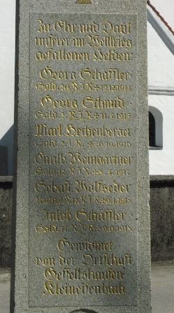 anbei Fotos zum Kriegerdenkmal in 85777 Gesseltshausen, Ortsteil von 85777 Fahrenzhausen, Landkreis Freising. Gelegen an der Fichtenstr. neben der Kirche St. Peter und Paul. Errichtet um 1920 vom Freisinger Steinmetz Johannes Franz.