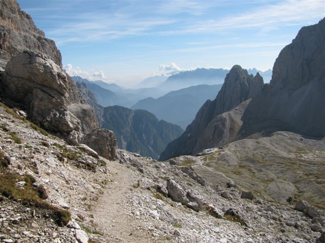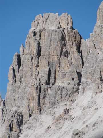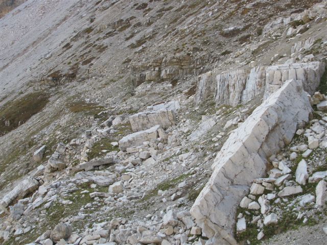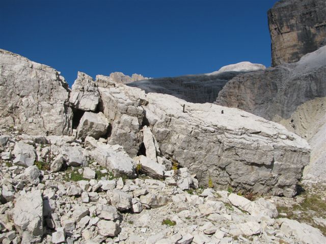 Hallo, Uli, heute einige Fotos der italienischen Feldwache Giralbajoch (Forcella Giralba). Das Joch war eine wichtige Nachschublinie für die italienischen Truppen, unterhalb des Jochs auf Südtiroler Seite beginnt die berühmte "Strada degli Alpini". Sehr schöner Blick auf den Elfer (Cima Undici) mit Stellungslöchern, die Hütten Zsigmondy-Comici und Carducci und die Oberbachernspitze (Crode Fiscaline). Zustieg über Zsigmondy-Comici Hütte (3,5 Std. Weg 103) ab Parkplatz Fischleinboden. Man erkennt heute noch Reste von einer kleinen Kaverne und die Fundamente einer Baracke, sowie die Brustwehr gegen österreichischen Beschuss. Viele Grüße nach München. KH