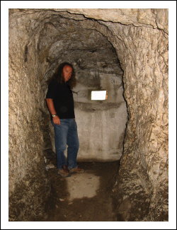 Ein ausgehauener Raum mit Mauerresten auf dem Weg zu den