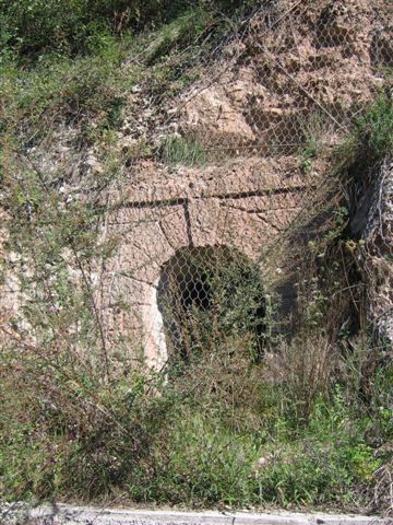 Kavernenausgänge liegen vor der Brücke. Die heutigen Öffnungen der