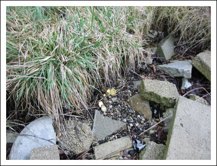 bisher unter Grasnarben verborgen war und  im Laufe der Zeit in