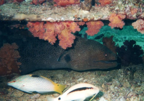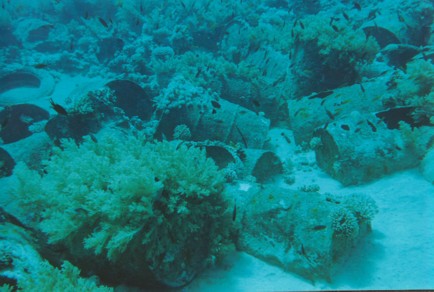 Für die Fische sind die Korallenstöcke und die Fässer ideale