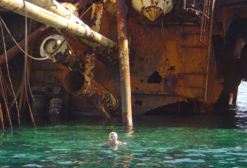 Uli bei der genauen Erkundung des Wracks