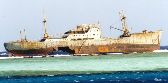 war die CONTSHIP HARMONY, die 1997 auf das Riff gebrummt ist. Die