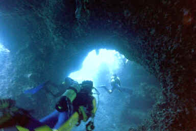 Hier kommt man sich vor, als ob man in einem Totenkopf schwimmen würde.